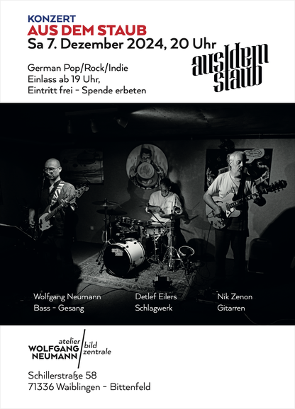 Samstag, 07. Dezember 2024 spielten wir ein volles Konzert in der Bildzentrale in Waiblingen-Bittenfeld, Wolfgangs neueröffnete Galerie mit Atelier